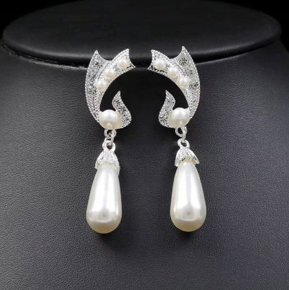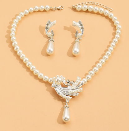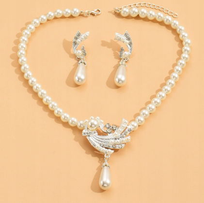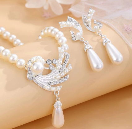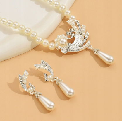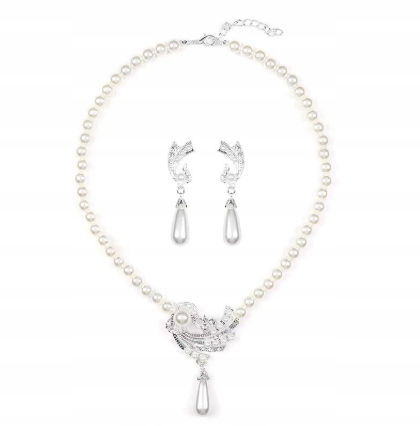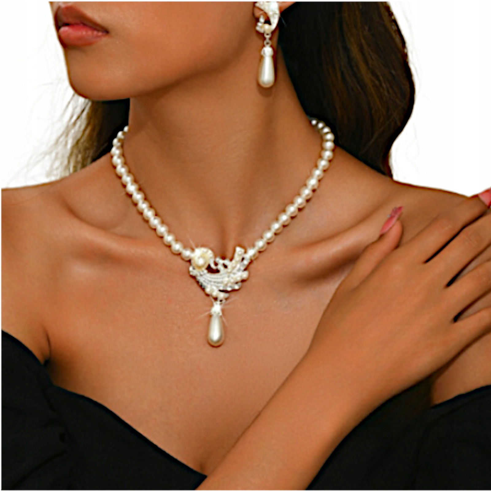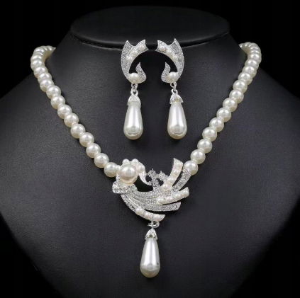 ✨Zestaw Biżuterii Ślubny – Kolczyki, Naszyjnik, Perły z Cyrkoniami