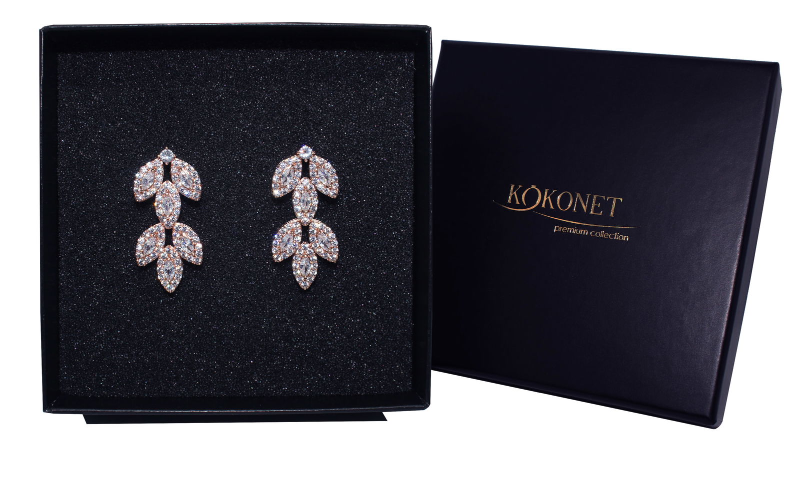 Kolczyki ślubne listki wysadzane cyrkoniami piękne