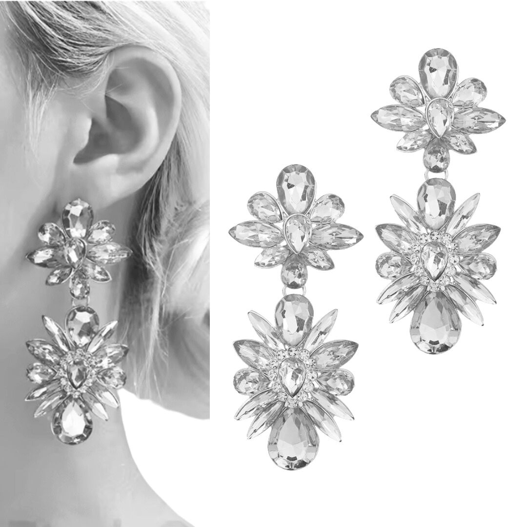 Kolczyki srebrne GLAMOUR zjawiskowe efektowne z kryształami kamieniami