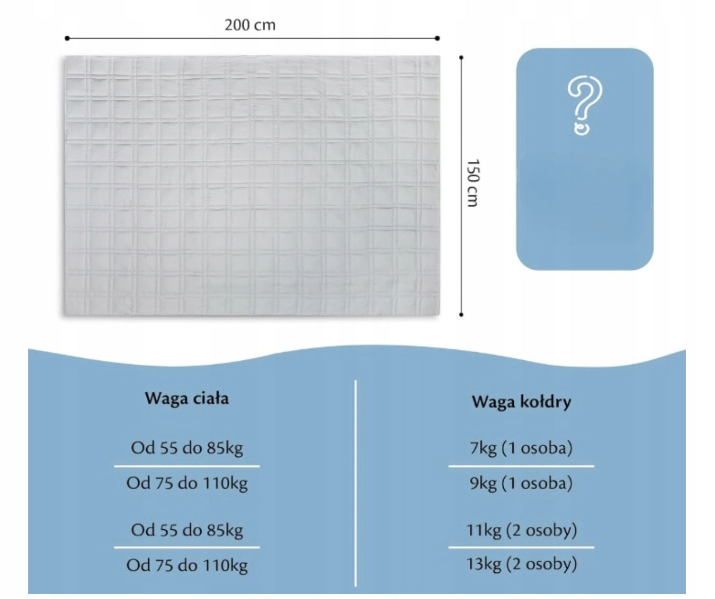 Znajdź swój idealny koc! Wybierz swój ciężki koc z naszej szerokiej gamy gramatur i rozmiarów. Pożegnaj niespokojne noce i znajdź swojego osobistego partnera do spania. Przewiń w dół i dowiedz się, jaki rozmiar Ci odpowiada.