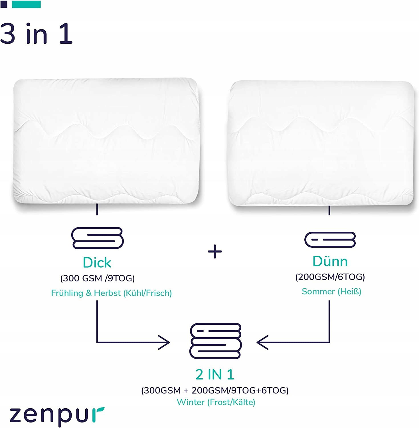 【Idealny dla alergików】: Włókna kołdry 220 x 240 cm zmniejszają liczbę roztoczy i zapewniają uczucie bez alergii. Z kołdrami ZenPur masz pewność, że Twój komfort jest w dobrych rękach, nawet podczas snu.