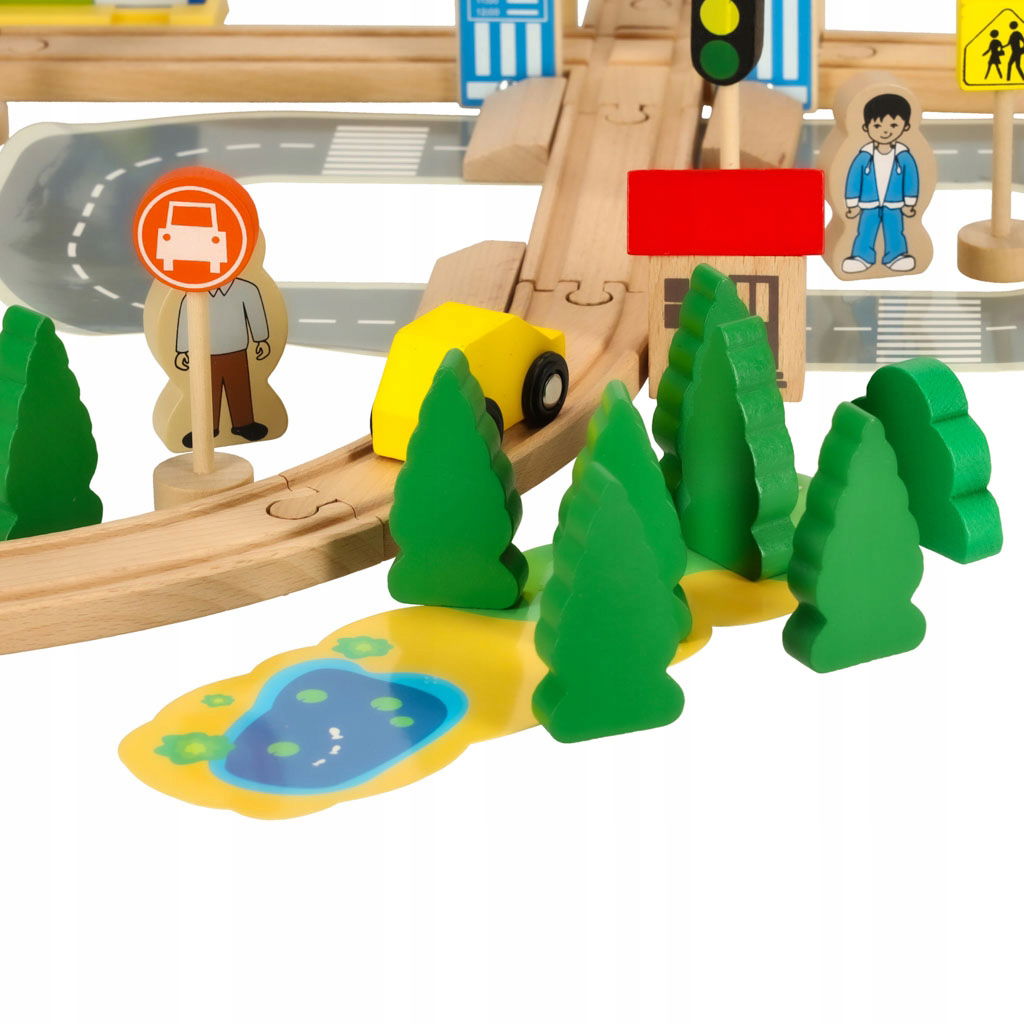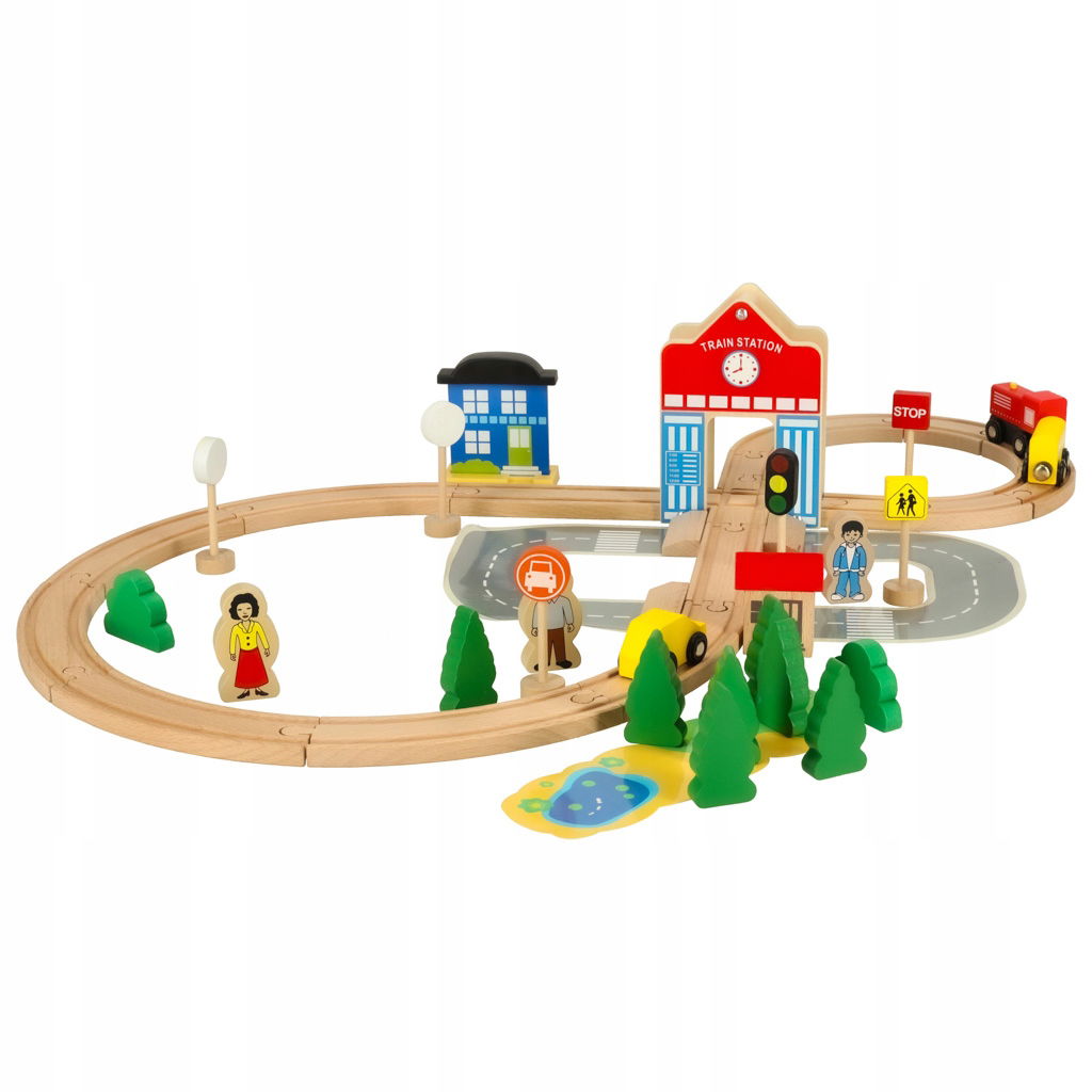 KOLEJKA DREWNIANA POCIĄG LOKOMOTYWA MIASTO 50 ELEMENTÓW