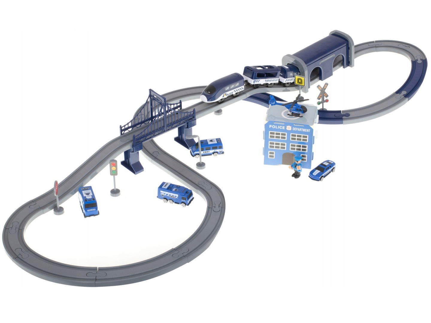 KOLEJKA ELEKTRYCZNA POCIĄG POLICJA AUTKA 92 ELEMENTY ~300CM