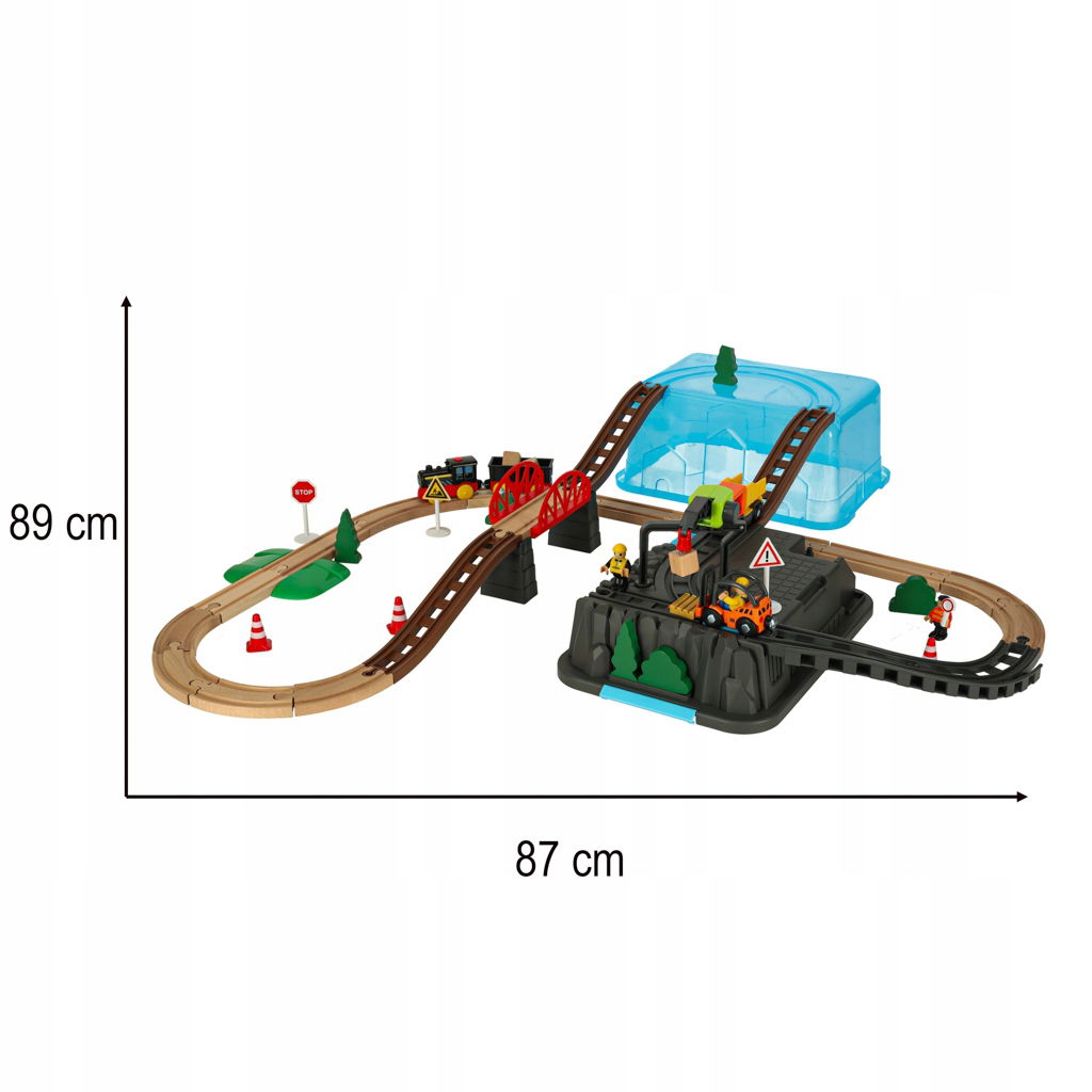 Tor samochodowy z pociągiem to zabawka, która otwiera przed dzieckiem fascynujący świat konstrukcji i transportu. Z klocków tworzy się kręty tor, pełen różnych wzniesień, po którym samodzielnie jeździ drewniana kolejka.