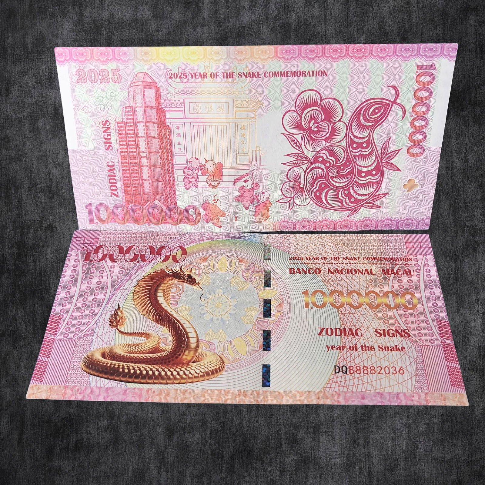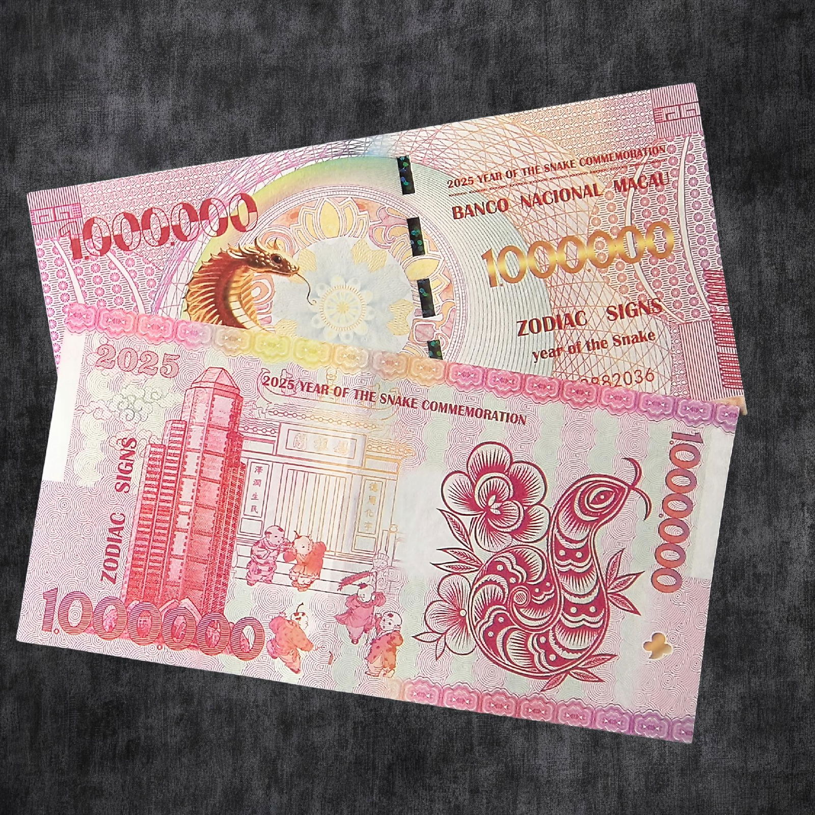 Kolekcjonerski Banknot Macau 1.000.000 Patacas Rok Węża 2025 UV blikshop