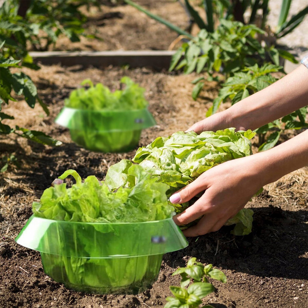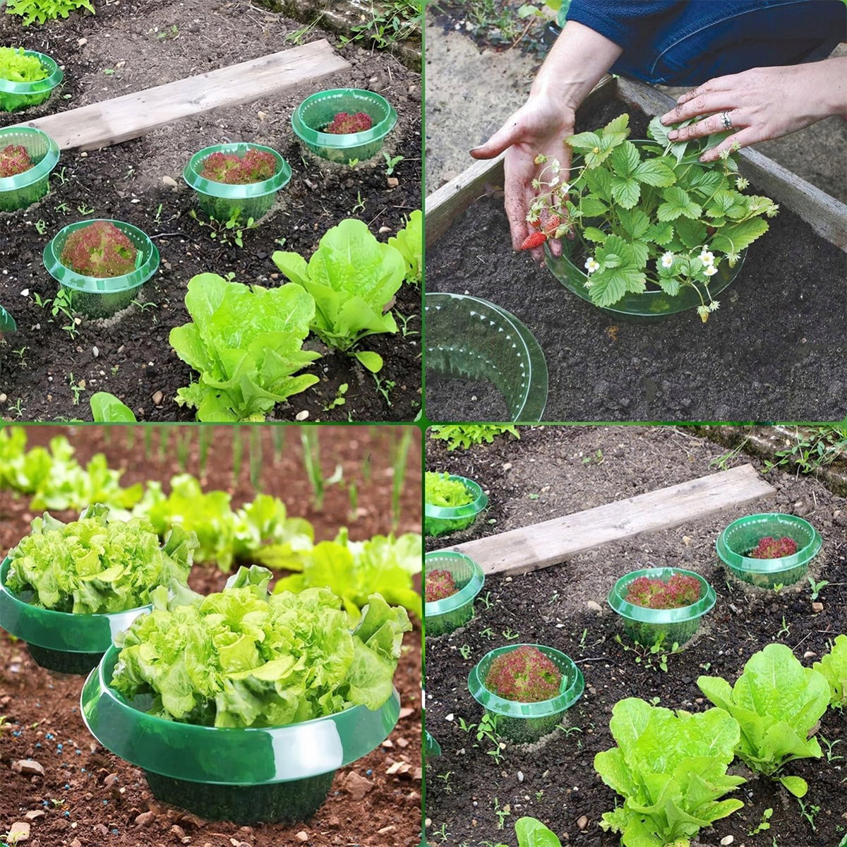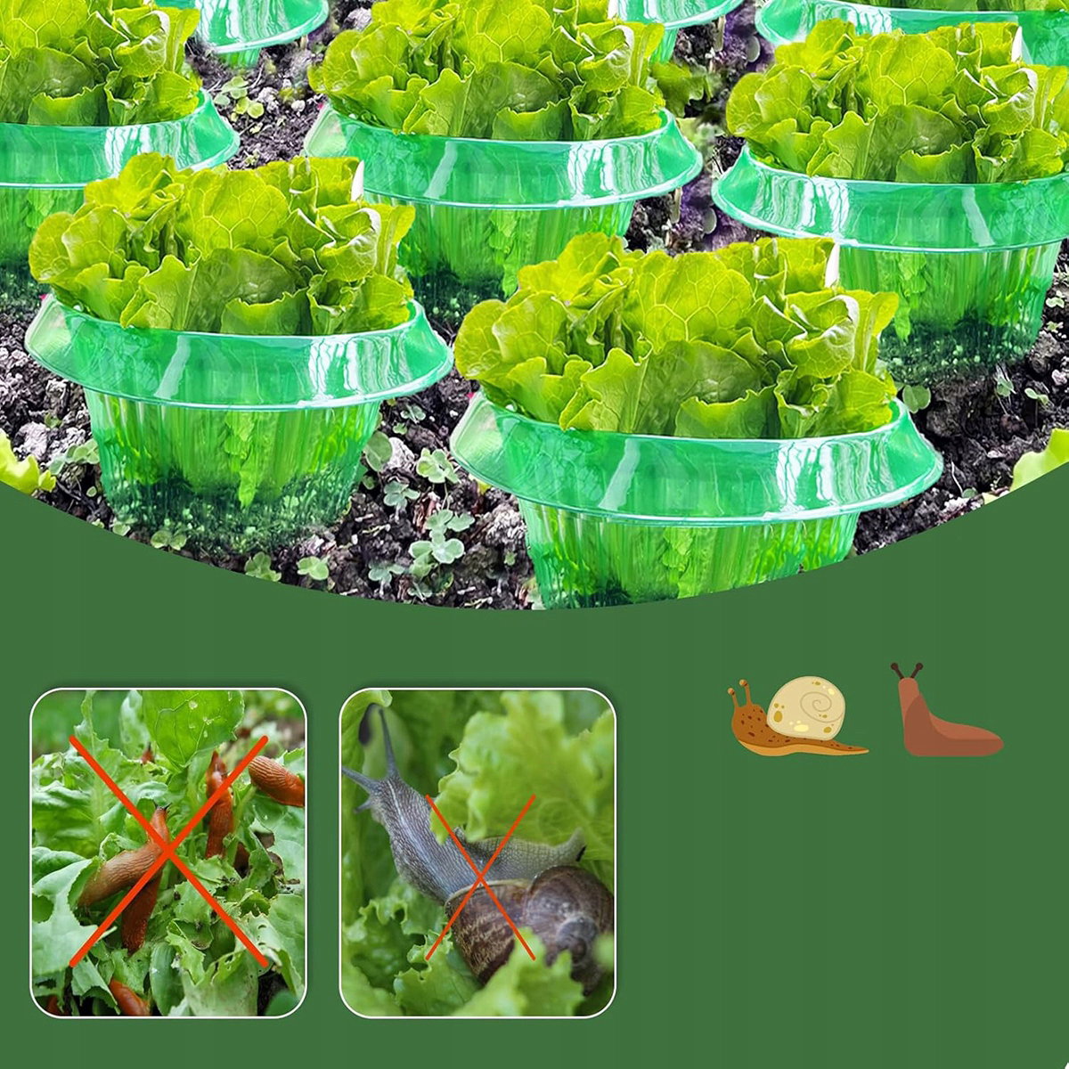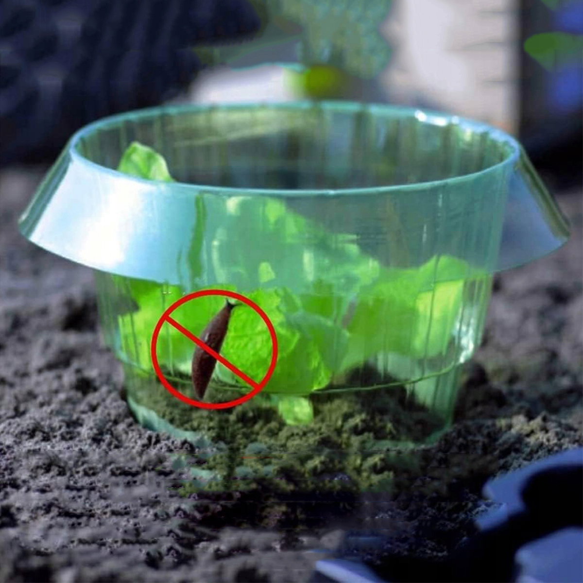 ?【Snail Stop】Zakrzywiona w dół krawędź stanowi nie do pokonania barierę. Kołnierz ślimakowy nie wykorzystuje żadnych środków chemicznych, co ogranicza uszkodzenia warzyw.