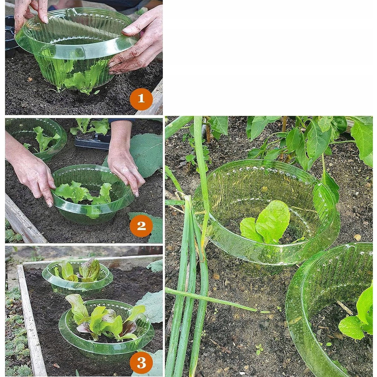 ?【ŁATWA INSTALACJA】Bariera przeciw ślimakom jest łatwa w montażu, wystarczy wsunąć kołnierz przeciw ślimakom na głębokość 2-4 cm w glebę.