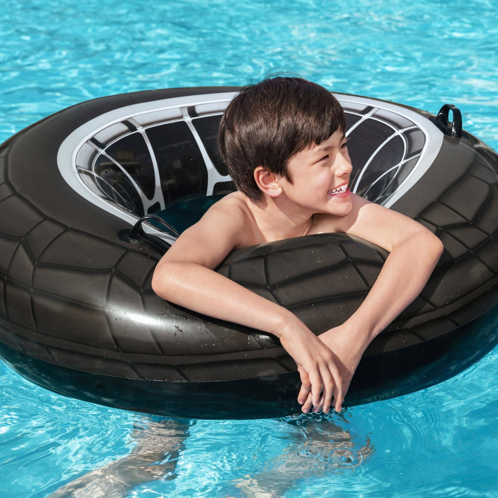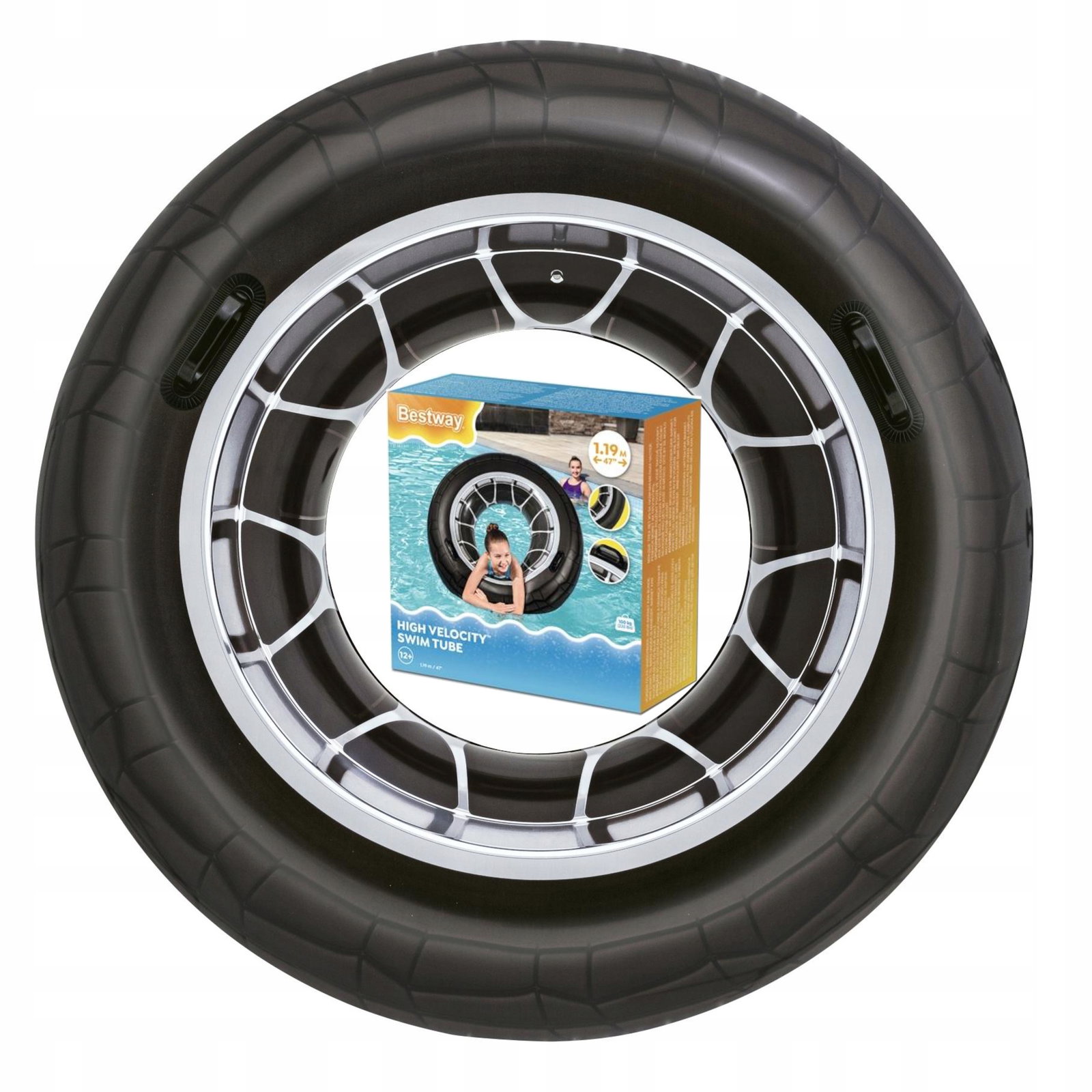 Koło do pływania Bestway w kształcie opony, idealne dla dzieci powyżej 12 lat i dorosłych. Wykonane z wytrzymałego PCV, łatwe w nadmuchiwaniu i przechowywaniu. Średnica 119 cm. Dwa solidne uchwyty dla bezpieczeństwa i wygody.