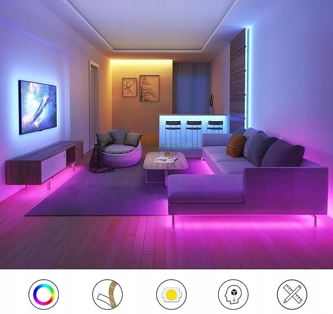 Wszechstronność zastosowań – Dzięki szerokiemu wachlarzowi kolorów i trybów, taśma LED sprawdzi się w wielu różnych sytuacjach. Jest doskonała do dekoracji wnętrz, imprez, świąt, Bożego Narodzenia, wesele, urodziny, a także jako oświetlenie TV lub podświetlenie mebli. Ponadto, taśma idealnie nadaje się do klubów, barów czy sklepów, gdzie stworzy wyjątkową atmosferę.