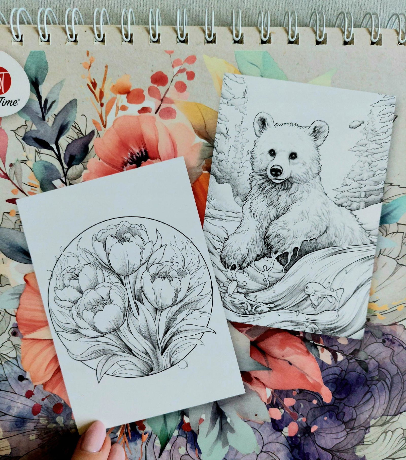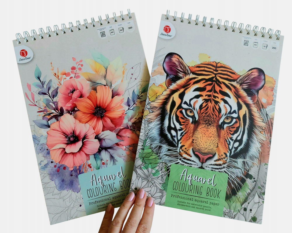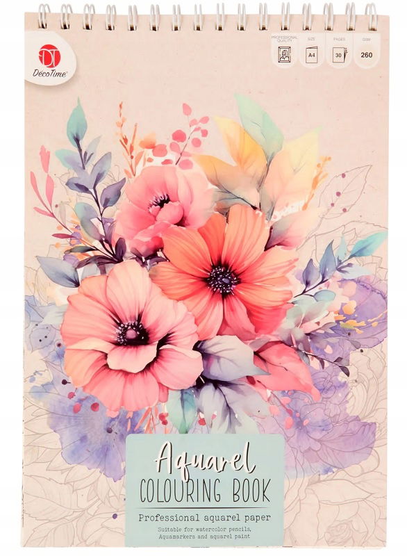 KOLOROWANKA AKWARELOWA 30 KART A4 NA SPIRALI KREDKI FARBY DECO TIME KWIATY