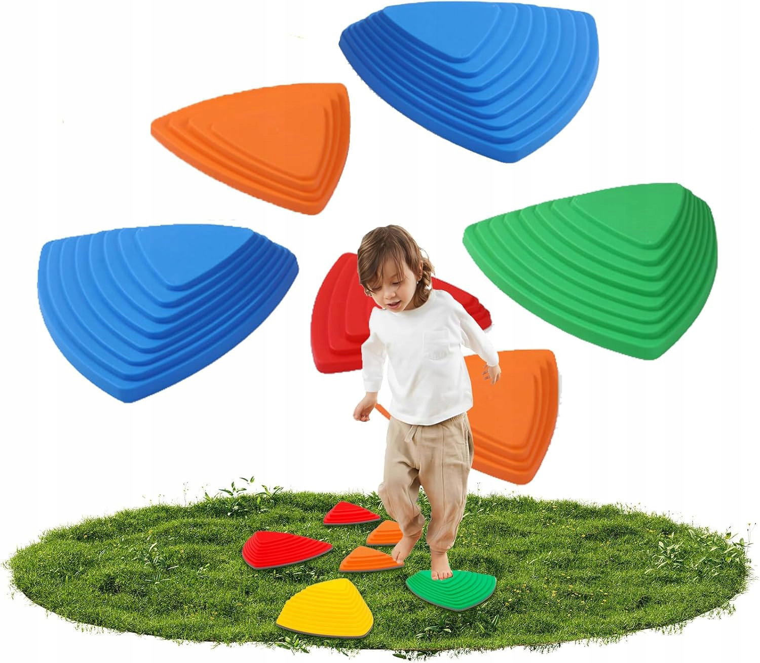 - Bezpieczna, antypoślizgowa konstrukcja: kamienie równoważne dla dzieci posiadają gumowaną, antypoślizgową podstawę, która zapobiega ślizganiu się na różnych powierzchniach – dywanie, płytkach, trawie czy parkiecie. Solidny, trójkątny kształt zapewnia stabilność i bezpieczeństwo podczas zabawy, bez ryzyka przewrócenia się kamienia.