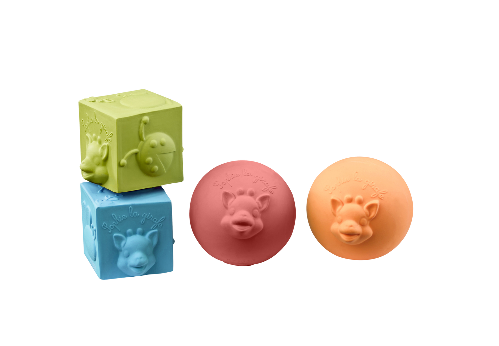 - bajecznie kolorowe, lekkie, kauczukowe piłki i kostki stworzone po to by rozwijać zręczność małych rączek maluszka. Maluch może doskonalić swoje umiejętności motoryczne poprzez manipulowanie piłkami i kostkami w trakcie zabawy rzucając je, chwytając, ściskając, układając na sobie lub turlając. Każda kostka i piłka odkrywa przed maluchem różne motywy Żyrafy Sophie i jej przyjaciół, które pobudzają i rozwijają zmysł dotyku. Jaskrawe i wesołe kolory pobudzają wzrok i zachęcają do zabawy. Wykonane w 100% z naturalnego kauczuku nadają się do gryzienia podczas ekscytującej zabawy Lekkie i elastyczne chronią przed bolesnym uderzeniem.