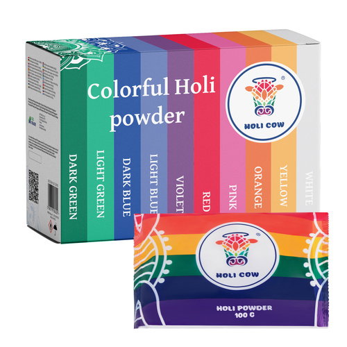 Proszek Holi zestaw 10×100 g Holi Cow kolorowy festiwalowy do zabawy