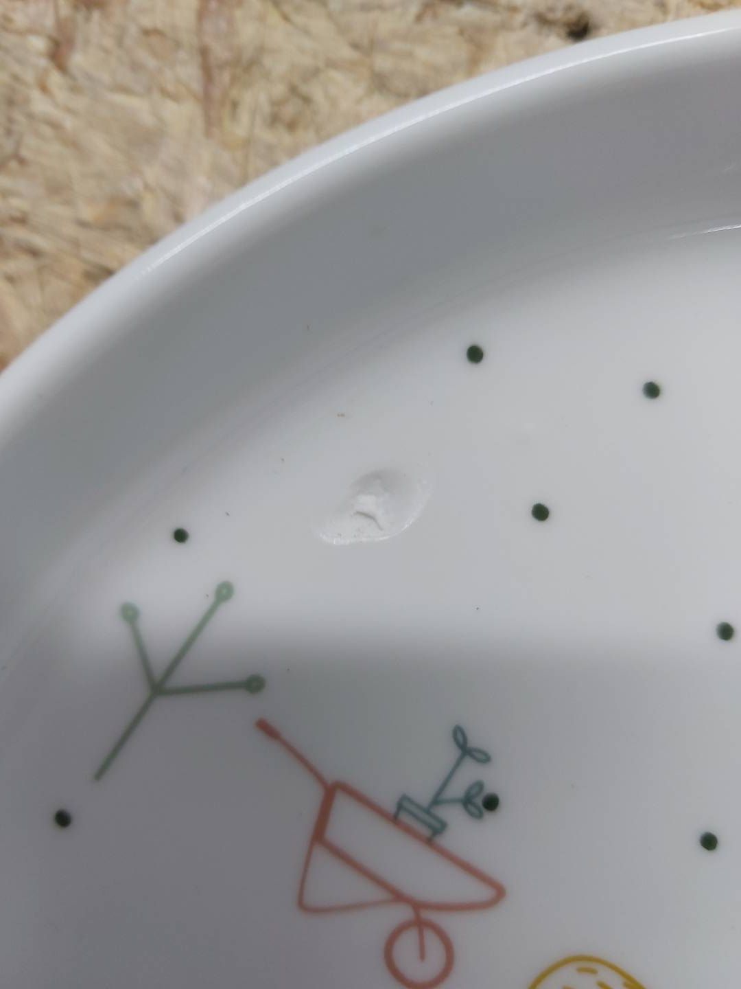 Porcelanowa zastawa dla dzieci nadaje się do mycia w zmywarce i używania w kuchence mikrofalowej. Jest idealna dla dzieci od 3 roku życia.