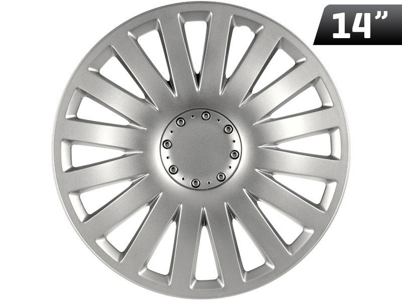 Cechy produktu: - komplet: 4 sztuki, - średnica: 14 cali, - kolor: srebrny, - materiał: trwałe tworzywo sztuczne, - prosty montaż i demontaż, - kompatybilne ze standardowymi felgami stalowymi 14”.