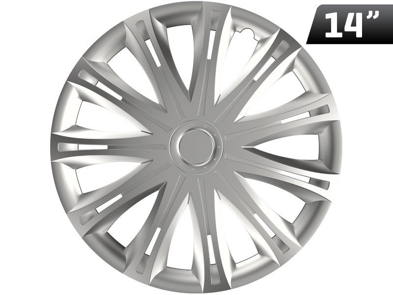 Cechy produktu: - Rozmiar: 14" - Kolor: srebrny - Ilość w zestawie: 4 szt. - Materiał: trwałe tworzywo sztuczne - Montaż: zatrzaskowy, szybki i prosty