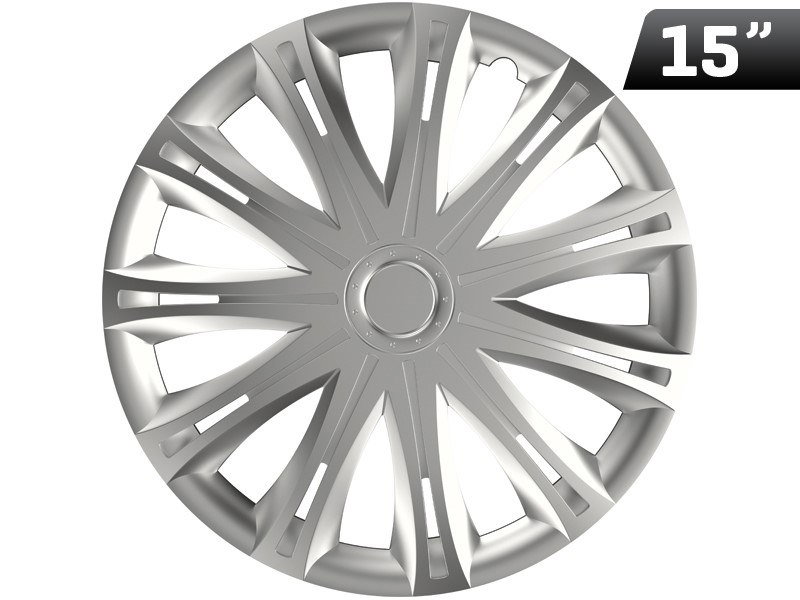 Specyfikacja: - Rozmiar: 15" - Kolor: srebrny - Ilość w zestawie: 4 szt. - Materiał: tworzywo ABS - Montaż: zatrzaskowy, uniwersalny do felg stalowych 15"