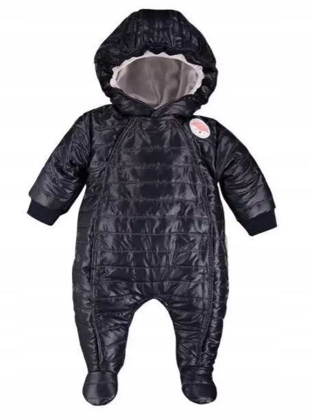 Uszyty z wysokogatunkowego materiału. Kapturek dzięki wszytej gumce, zabezpiecza główkę przed chłodem dokładne przylegając do główki dziecka. W rękawkach wszyte bawełniane rękawiczki zapewniające dodatkową ochronę przed chłodem. Wygodne całkowite rozpinanie po obu stronach na bezniklowe napy. Bawełniana podszewka.