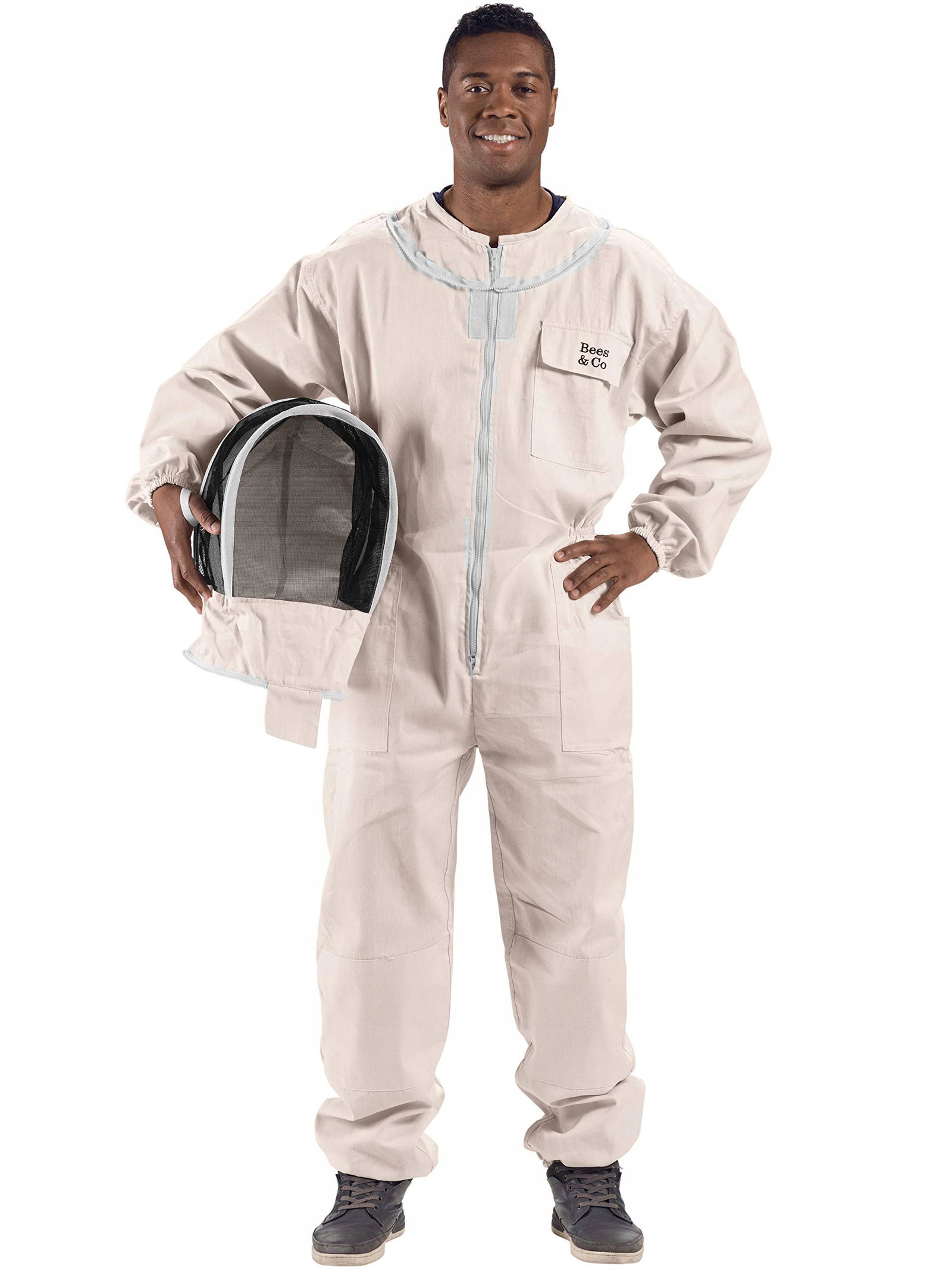 Kombinezon dla kobiet i mężczyzn XXL od 192 do 197 cm. Wytrzymałe zamki błyskawiczne, trwałe podwójnie szyte kieszenie. Trzy kieszenie, bawełniane nakolanniki i dwie kieszenie na narzędzia na nogawki. Elastyczny ściągacz i elastyczne mankiety oraz elastyczne szlufki na kciuki, które utrzymują wszystko wygodnie na swoim miejscu. Kombinezon pszczelarski z naturalnej bawełny ze zdejmowanym welonem ogrodzeniowym.