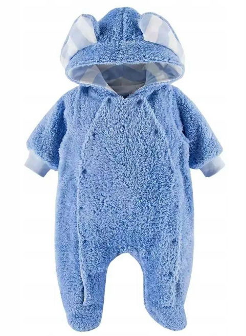 Uszyty z miękkiej, przyjemnej w dotyku, wysokogatunkowej tkaniny. Bawełniana podszewka. Rozpinany jest na całej długości z dwóch stron na bezniklowe napy. Posiada kaptur z doszytymi uszkami.