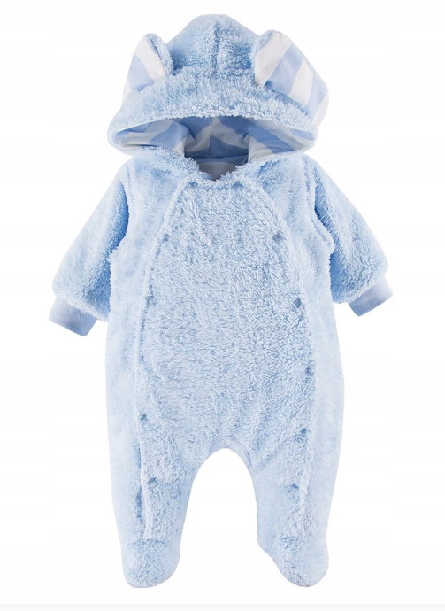 Uszyty z miękkiej, przyjemnej w dotyku, wysokogatunkowej tkaniny. Bawełniana podszewka. Rozpinany jest na całej długości z dwóch stron na bezniklowe napy. Posiada kaptur z doszytymi uszkami.