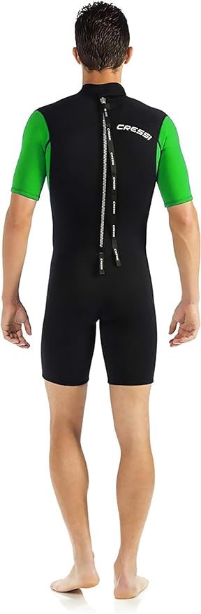 Jednoczęściowy krótki mokry skafander to niezbędny element wyposażenia każdego entuzjasty sportów wodnych. Wykonany z dwuwarstwowego neoprenu o grubości 2,5 mm zapewnia wygodę i swobodę ruchów podczas snorkelingu, nurkowania w wodach tropikalnych, pływania, żeglowania i innych aktywności nad wodą. Dzięki suwakowi z tyłu oraz regulowanemu kołnierzowi z zapięciem na rzep, skafander jest łatwy w zakładaniu i dopasowaniu do sylwetki.