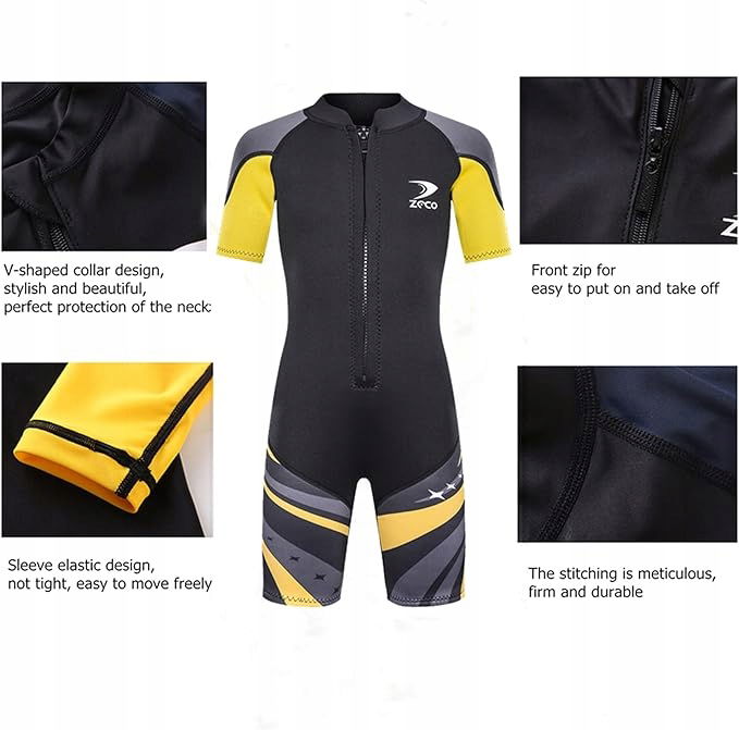 Wykonany z najwyższej jakości neoprenu SCR o grubości 2,5 mm, kombinezon zapewnia doskonałą izolację termiczną, co jest kluczowe podczas zabaw w chłodniejszych wodach. Neopren gwarantuje również wyporność i ochronę przed chłodem, dzięki czemu dziecko dłużej utrzymuje komfort cieplny i może cieszyć się aktywnością na wodzie bez przeszkód.