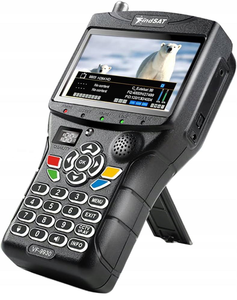 - Naziemny cyfrowy miernik sygnału wyposażony w 4,3-calowy ekran LCD o wysokiej rozdzielczości (Dots Piexls 800 X 480), wsparcie wideo i program telewizyjny na żywo, który obsługuje wyświetlacz mocy w czasie rzeczywistym. Miernik wyszukiwarki satelitarnej z podświetlanymi klawiszami Ułatwia obsługę przy niskim świetle.