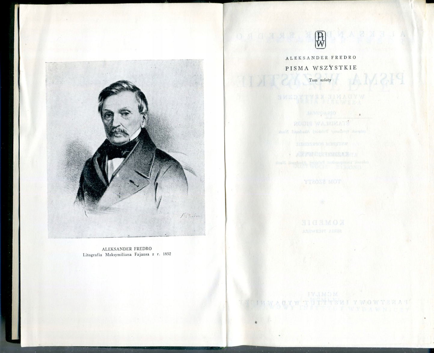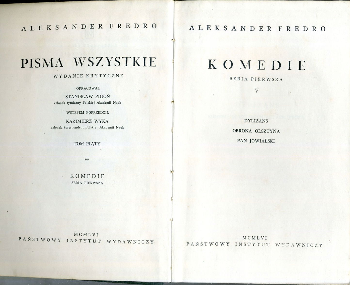 • Fredro Pisma wszystkie Komedie Dyliżans, Obrona Olsztyna, Pan Jowialski (1956)