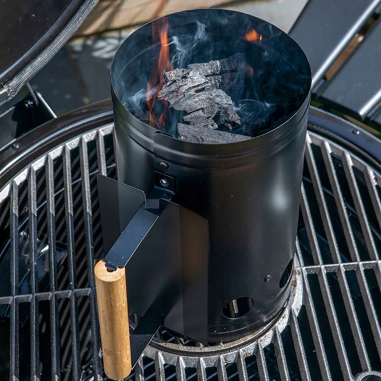 Po rozpaleniu węgla/brykietu wystarczy przechylić komin i silnym ruchem wsypać zawartość do grilla. Koniec z układaniem prowizorycznych "piramidek" z węgla lub lania podpałek. Komin pozwala na pełny relaks i spokojne grillowanie w miłej atmosferze.