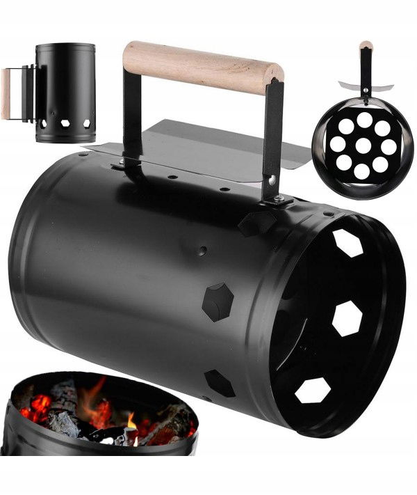 KOMIN DO ROZPALANIA GRILLA WĘGLA BRYKIETU W CZARNYM KOLORZE Z RĄCZKĄ METAL