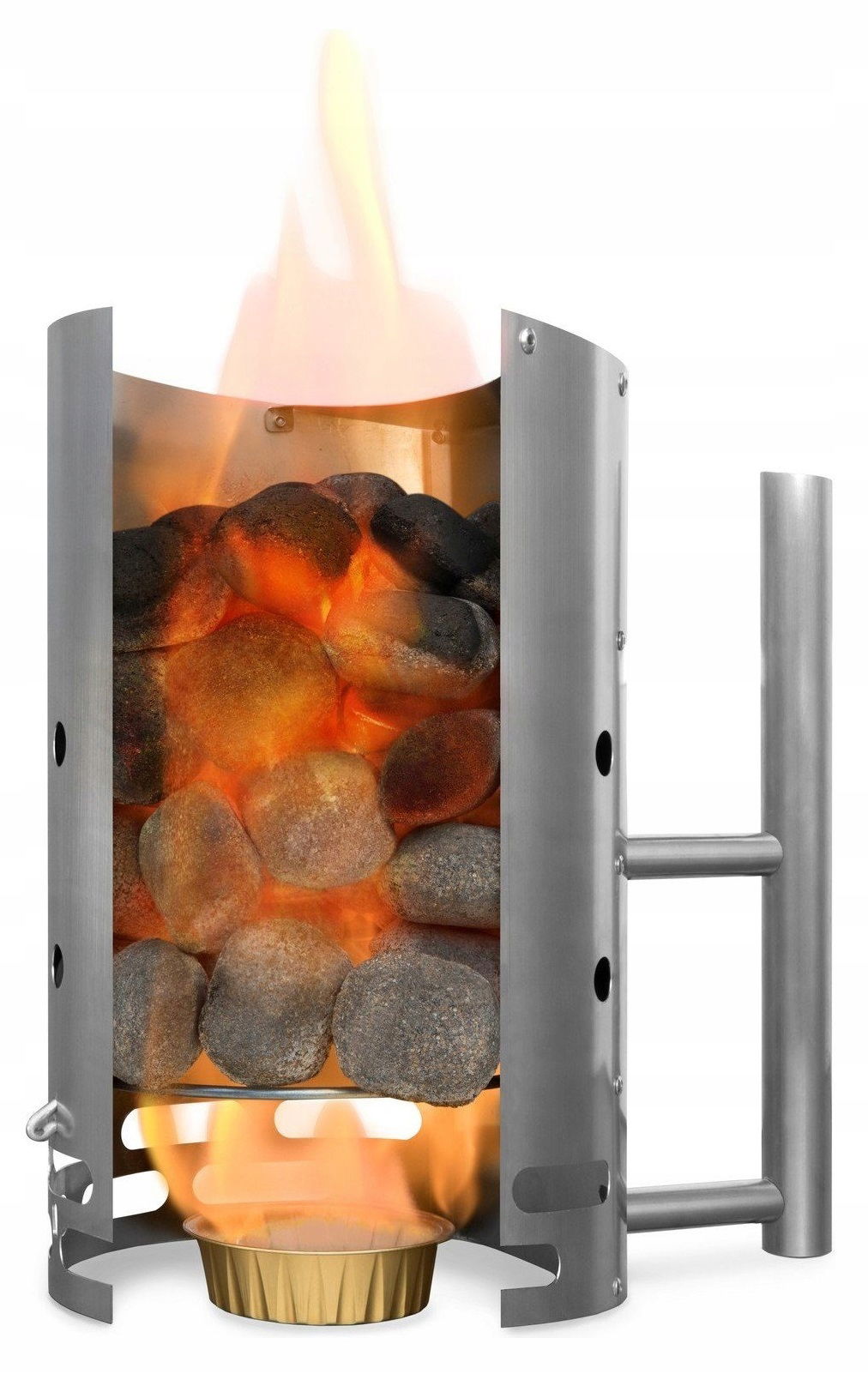 Ten poręczny gadżet sprawi, że węgiel drzewny lub brykiety będą gorące i gotowe do użycia w mgnieniu oka. Podgrzej węgiel drzewny lub brykiety za pomocą podpałek. Starter do grilla jest wyposażony w drewniany uchwyt i osłonę termiczną.