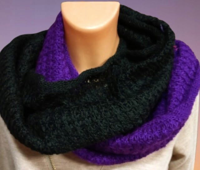 KOMIN MODNY SZALIK PLECIONY CIEPŁY fioletowo czarny ESTARE 180X30cm