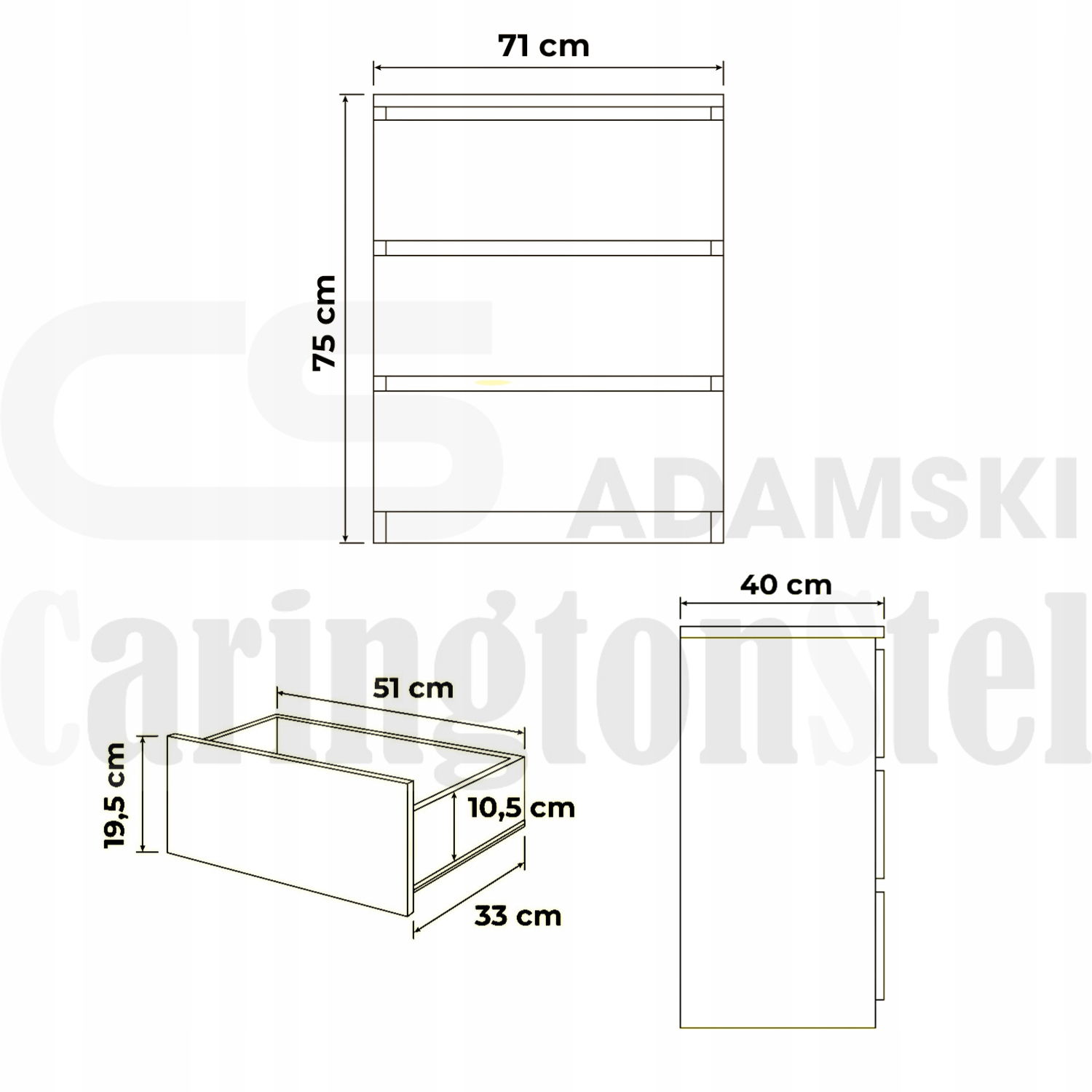 Komoda 70 cm z 3 szufladami – Kolor KASZMIR