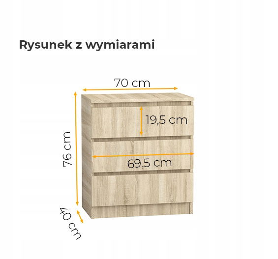 Komoda 70 cm 3 szuflady sonoma