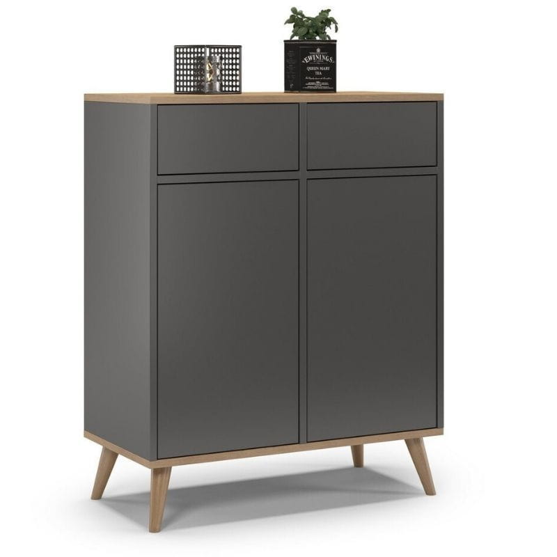 Komoda na nóżkach do sypialni, SKAND, 80x40x100 cm, grafit, dąb, mat