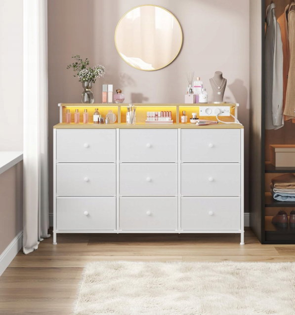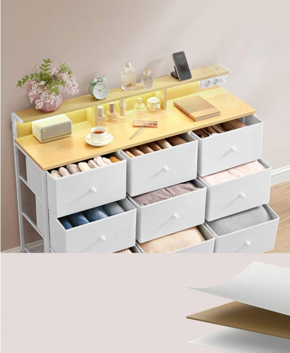 - ✴️【KOMPLETNA PRZESTRZEŃ DO PRZECHOWYWANIA】 9 przestronnych szuflad do sortowania i przechowywania ubrań, koców, szalików itp., otwarte przegródki zapewniające łatwy dostęp do produktów do pielęgnacji skóry i perfum, podwyższona półka na inne drobne przedmioty - wszystko ma swoje miejsce