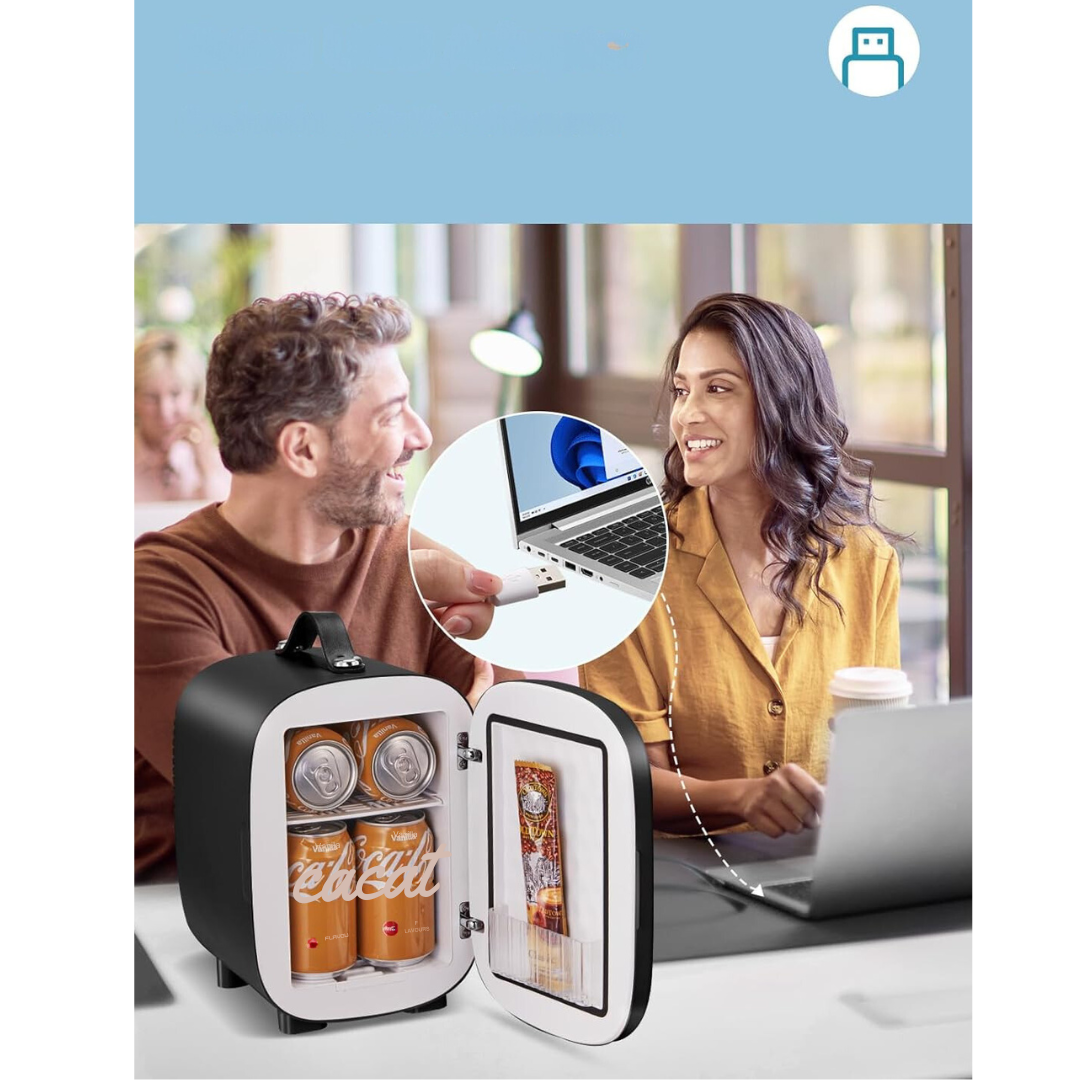 Mini lodówka o pojemności 5 litrów to kompaktowe urządzenie, które pozwala na przechowywanie napojów, przekąsek, kosmetyków itp. w łatwo dostępny sposób.