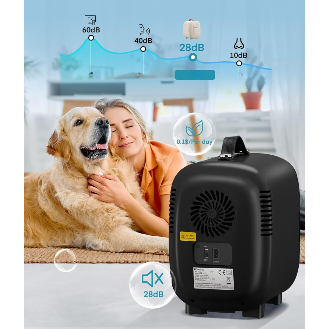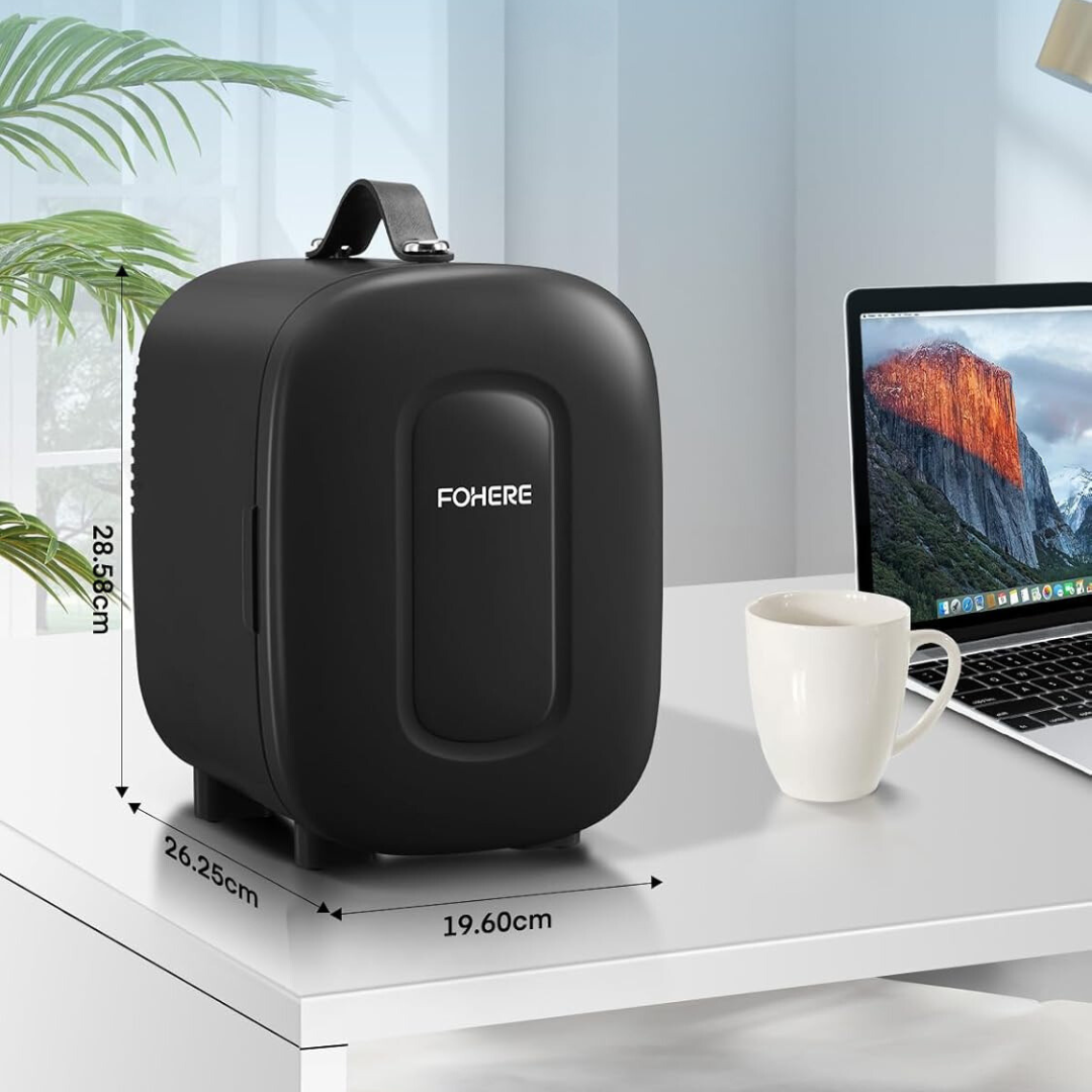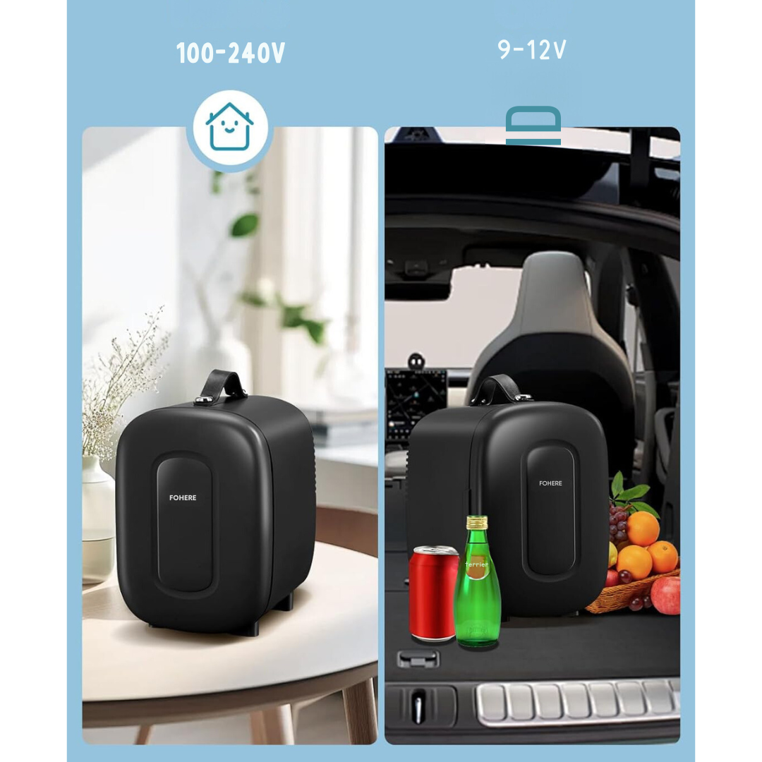 FOHERE Mini lodówka 5 litrów, 6 puszek, mini lodówka, 12 V-220 V, zasilanie USB do pokoju, skincare, biura lub samochodu, mała lodówka, cicha do kosmetyków, owoców lub napojów, czarna.