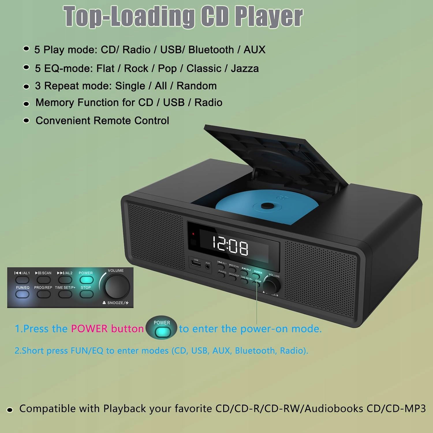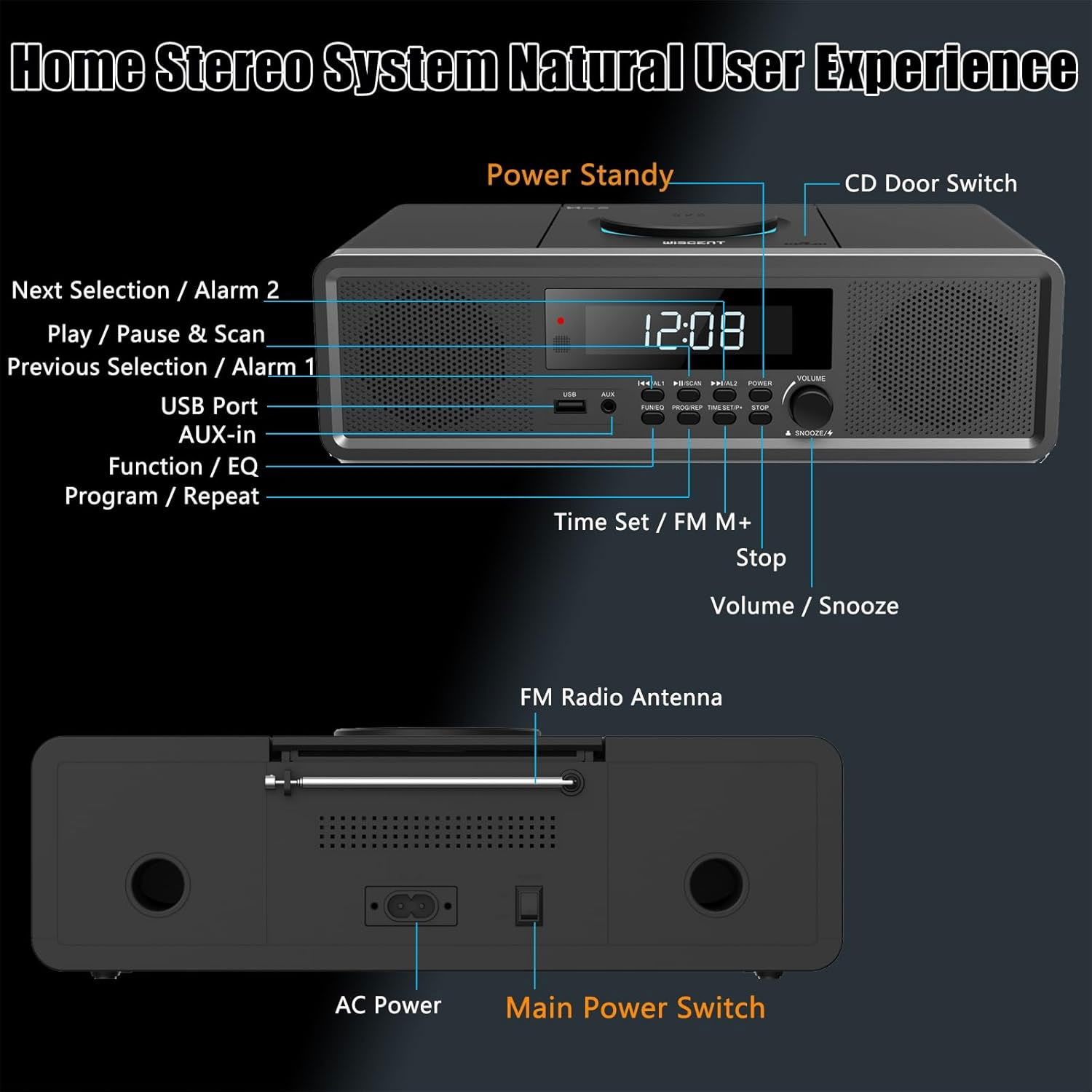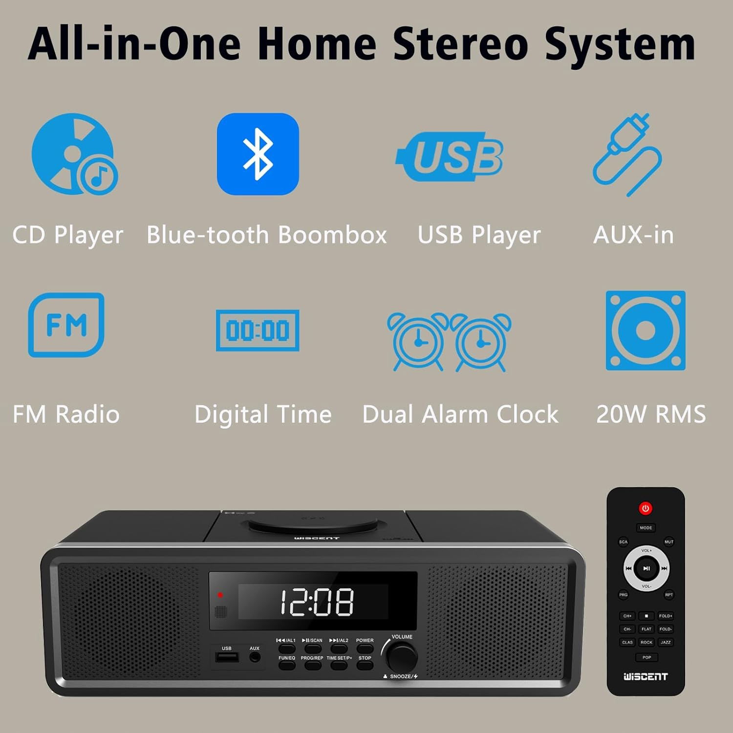 � WISCENT Kompaktowy System Audio – CD, Radio, Bluetooth, USB