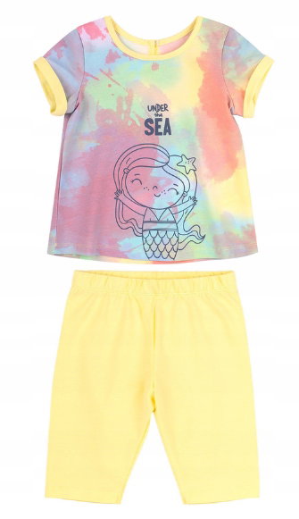 Uszyty z wysokogatunkowego, przyjemnego w dotyku materiału. Spodenki posiadają w pasie gumę nie uciskającą brzuszka dziecka. Bluzka o luźnym kroju. Rozpinana na karczku na guziczek.