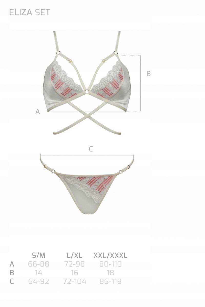 ELIZA SET - Wyjątkowo subtelny i kobiecy komplet w kolorze ecru. Komplet został dopasowany do potrzeb kobiet w taki sposób, aby sprawdził się zarówno na co dzień, jak i na wyjątkową okazję. Nietypowy, fantazyjny krój i urocza koronka nadaje jedynego w swoim rodzaju uroku do całości.- produkt nie uczula- nie odbarwia się- nie farbuje przy praniuPranie wg zaleceń producenta na metce.Produkt wyprodukowany w Polsce.Produkt wyprodukowano w 100% w UE.Produkt zawiera certyfikowane materiały Oeko-Tex.
