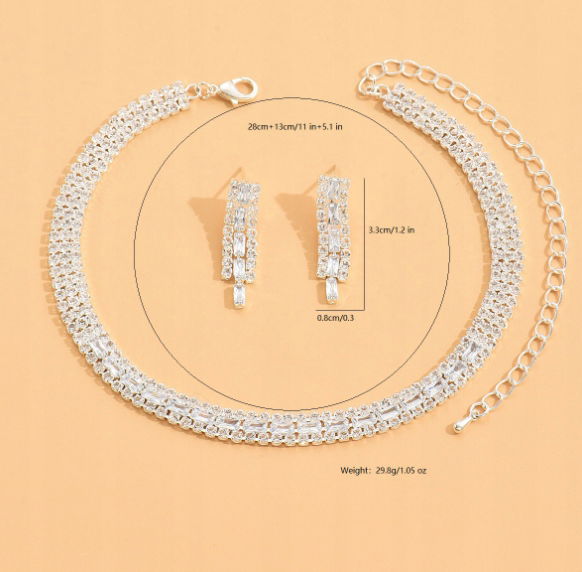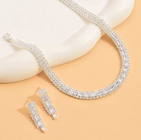 Komplet Biżuterii Kolczyki Naszyjnik Ślubny Srebrny Cyrkonie Elegancki B3