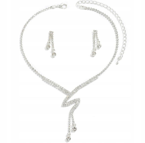 Komplet Biżuterii Kolczyki Naszyjnik Ślubny Srebrny Cyrkonie Kryształy