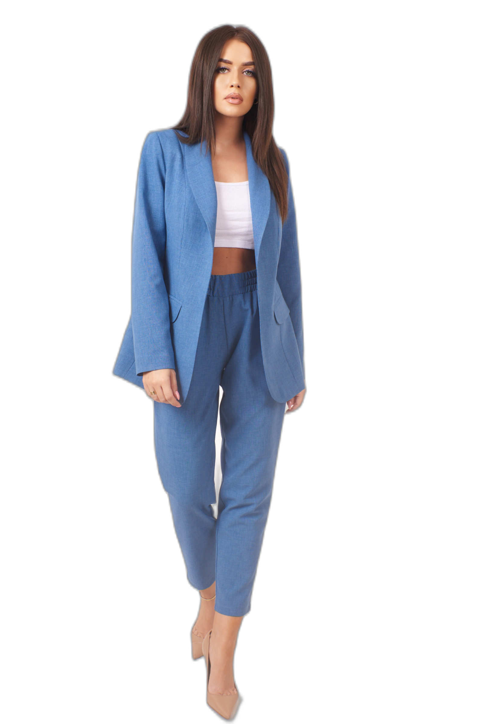KOMPLET CASUALOWY GARNITUR NA WIOSNĘ LATO ROZMIAR 46 NIEBIESKI