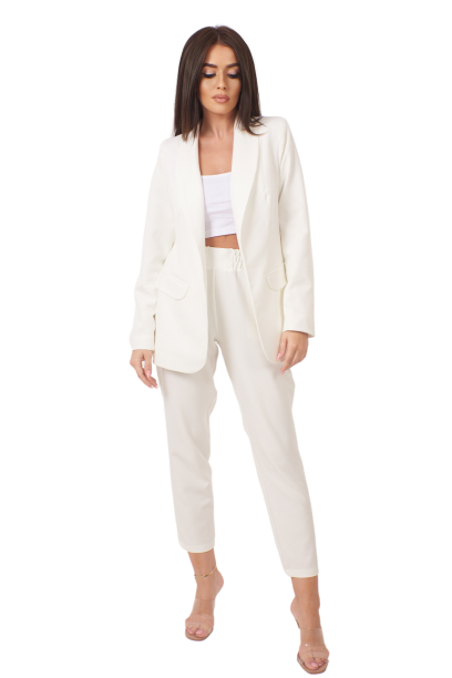 Garnitur damski uszyty z materiału który w splocie nawiązuje do lnu.