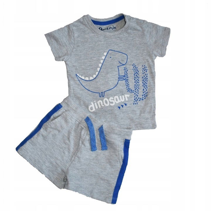 Ten uroczy komplet chłopięcy Relefun to idealny wybór dla Twojego maluszka na letnie dni! Zestaw zawiera wygodny T-shirt oraz spodenki w zabawnym motywie dinozaurów.