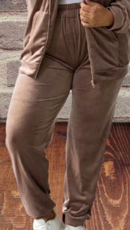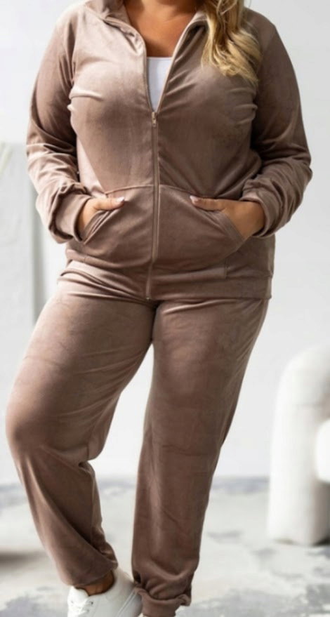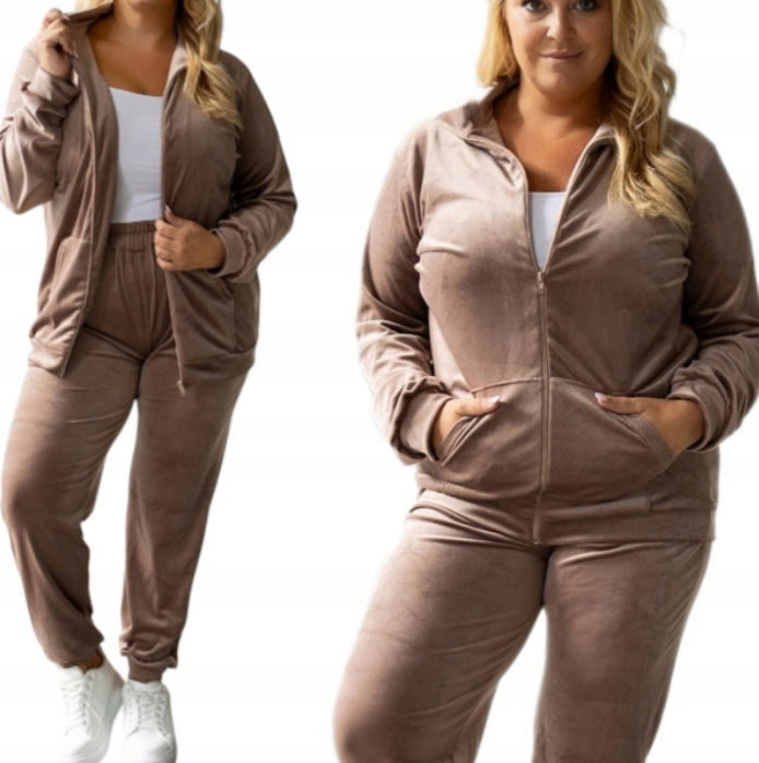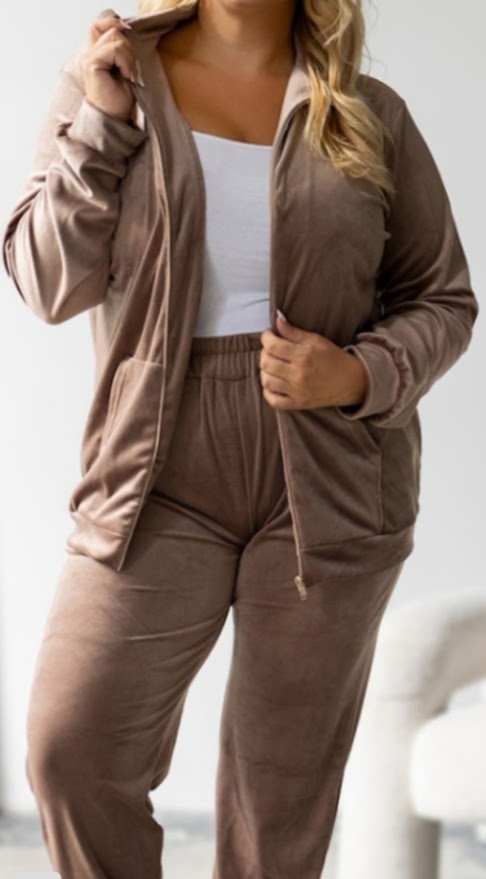Komplet DRES WELUROWY mięsisty rozpinany z kapturem capuccino 5/6XL