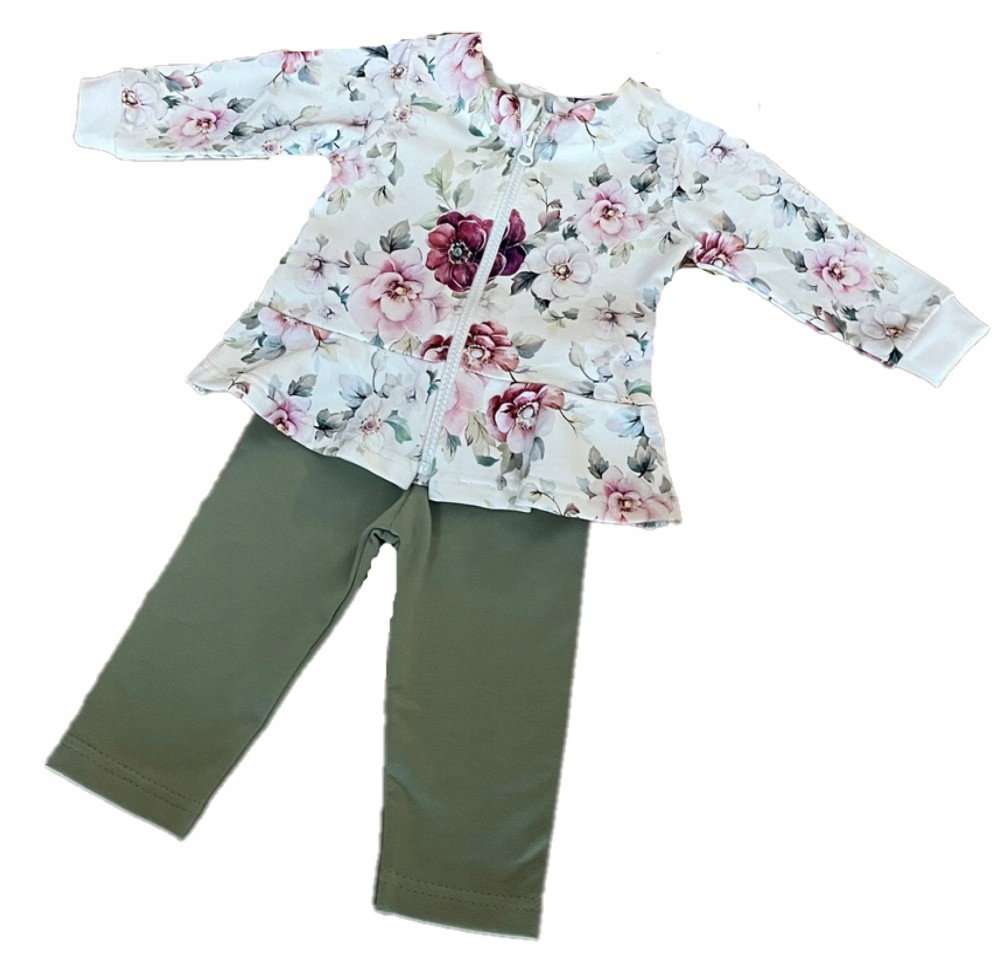 Uszyty z wysokogatunkowego, miękkiego i przyjemnego w dotyku materiału. Bluza rozpinana po całości, przez środek na zamek błyskawiczny. Spodenki posiadają elastyczny ściągacz w pasie nie uciskający brzuszka dziecka.