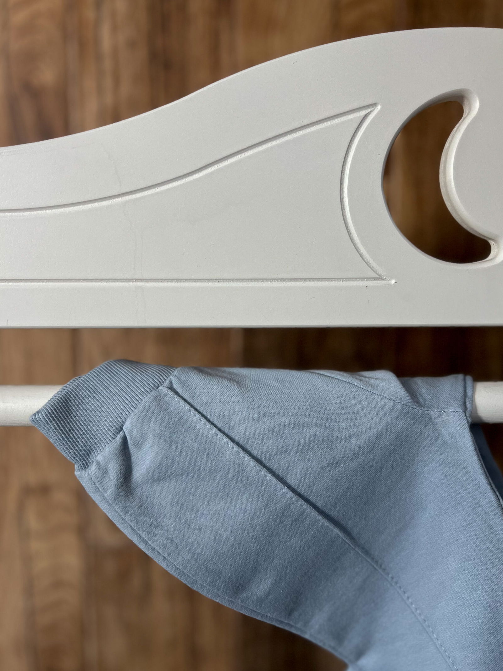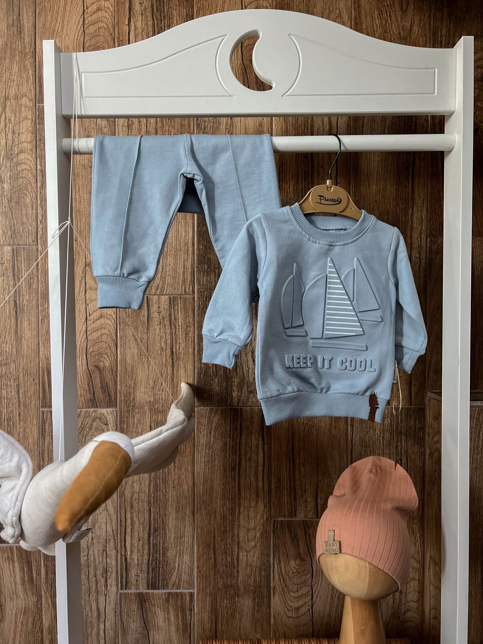 Dwuczęściowy komplet dresowy Little Sailor to niemowlęcy strój idealny dla Twojego chłopca. Bluza i spodenki Sailor to wygoda i uroczy look maluszka. Bluza o klasycznym kroju posiada tłoczony wzór żaglówek nadający wakacyjny klimat. Dodatkowym smaczkiem jest aplikacja w postaci żagłówki ze skóry ekologicznej. Spodenki cechują się luźnym krojem, szeroką gumką w pasie i ściągaczami na nogawkach, dzięki czemu zapewnią małemu chłopcu nieskrępowane ruchy i swobodę w poznawaniu świata. Dodatkowo posiadają stylowe przeszycia z przodu. Komplety dostępne są w rozmiarach na 3-18/24 miesięcy.